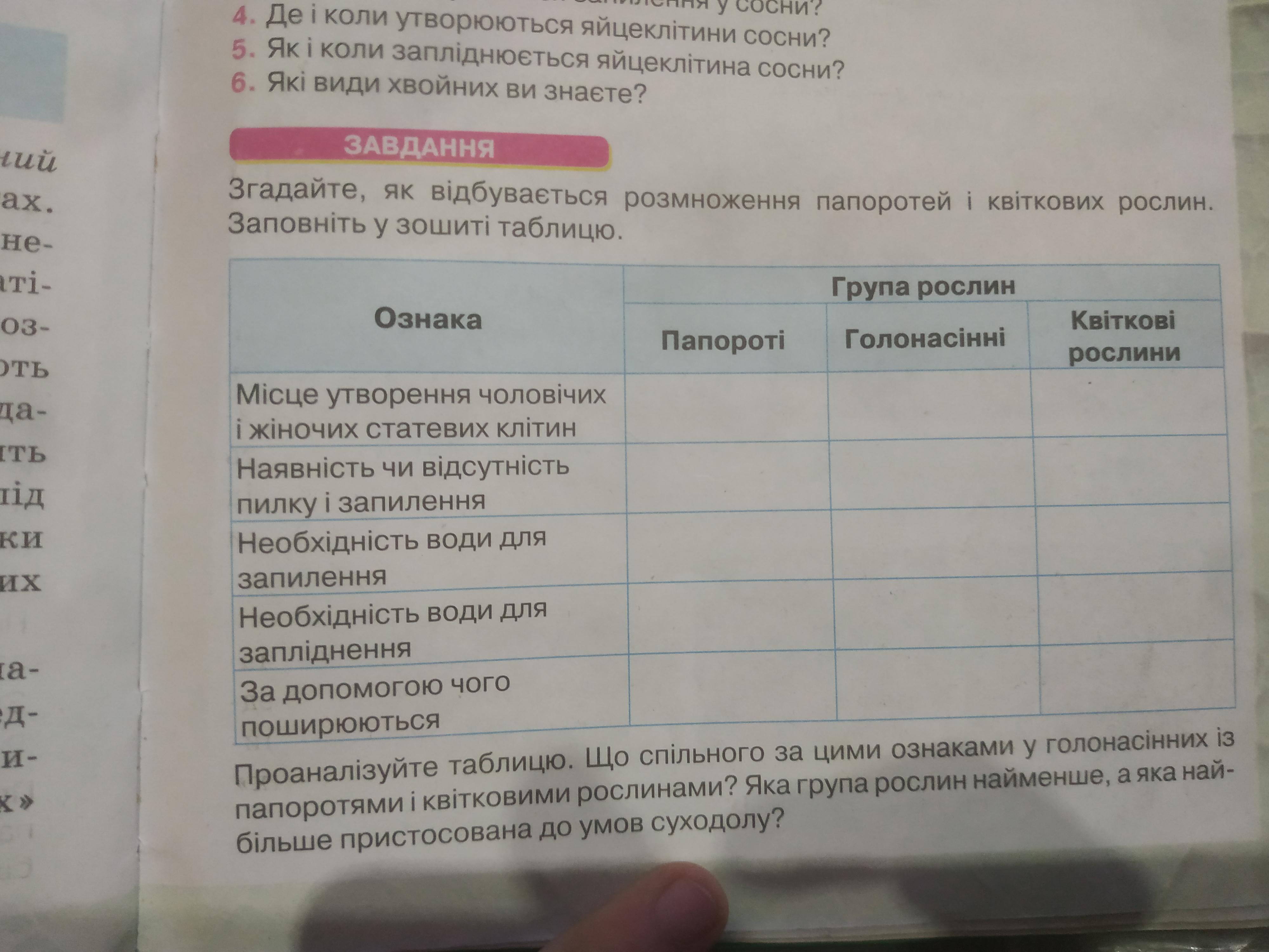 Згадайте, як відбувається розмноження папоротей і квіткових рослин. Заповніть у зошиті таблицю.
