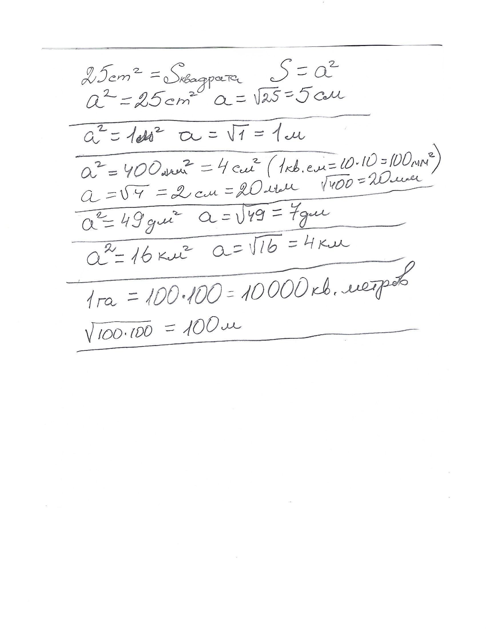 Обратите внимани е :_ЕДИНИЦЫ ИЗМЕРЕНИЯ СТОРОН ВСЕГДА ЛИНЕЙНЫЕ! Без квадратов. А площади - ВСЕГДА квадратные!