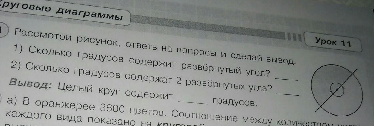 Вывод: целый круг содержит 360 градусов