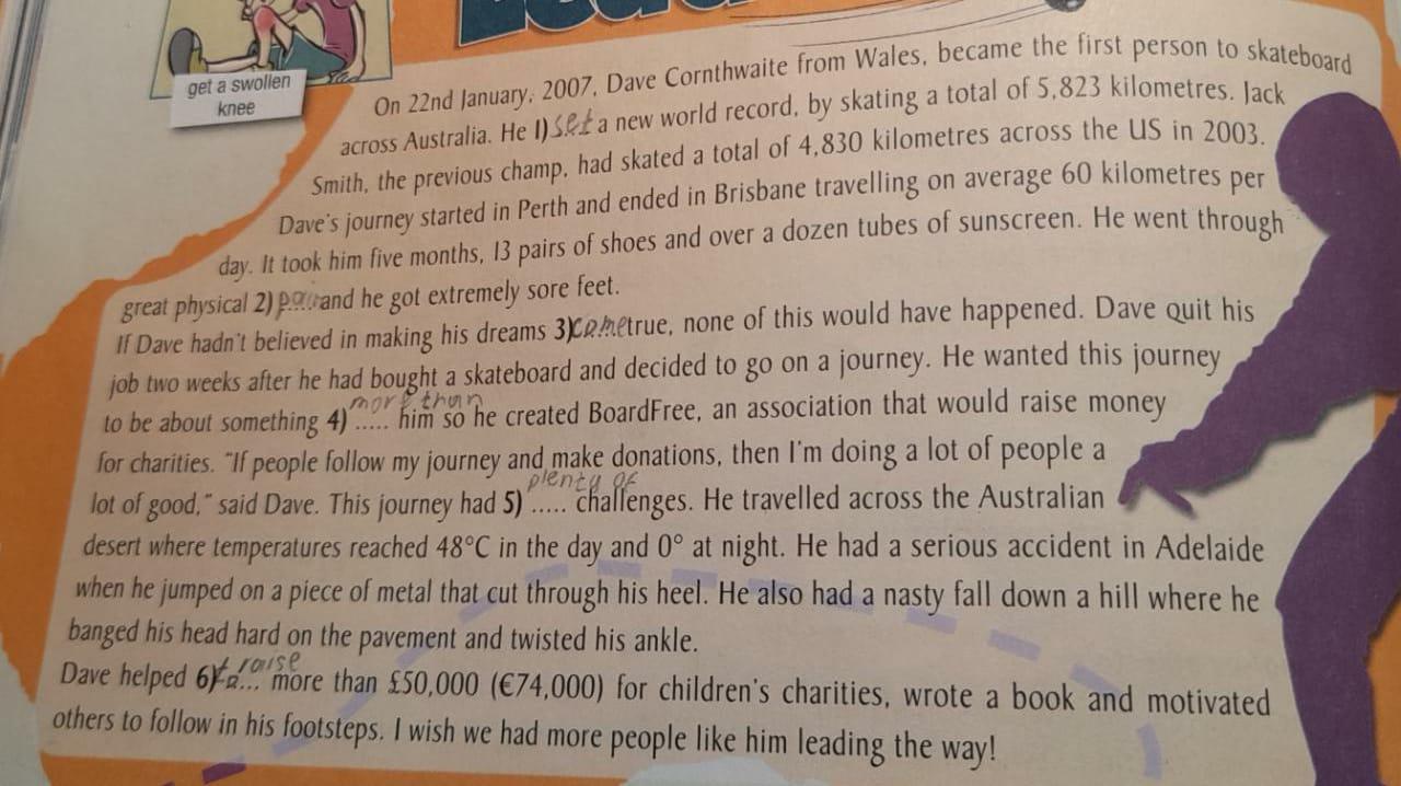 Прпущеные слова:1.set,2.pain,3.come,4.more than,5.planty of,6.to raise.