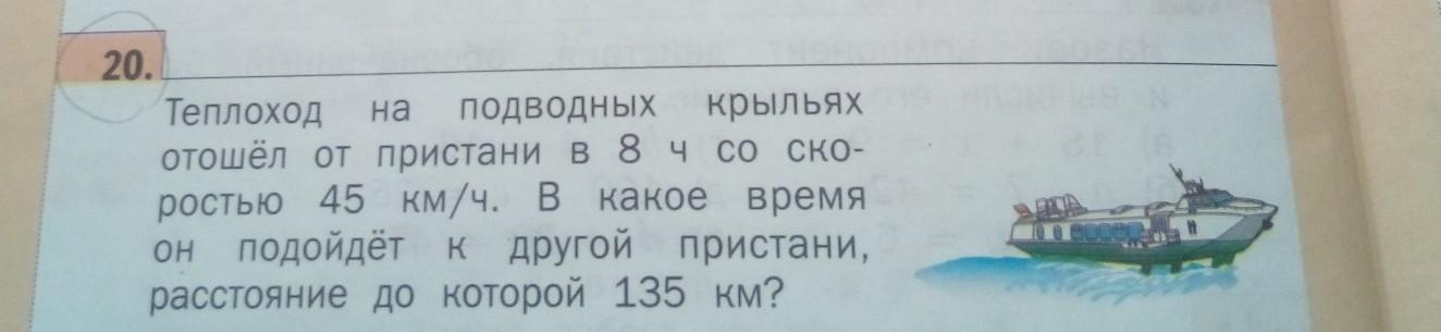1) 135:45=3(ч) - он подойдет к другой пристани
