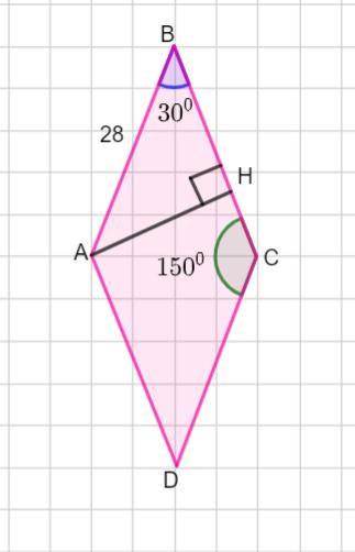 Сторона ромба равна 28, а один из углов этого ромба равен 150. Найдите высоту этого ромба.