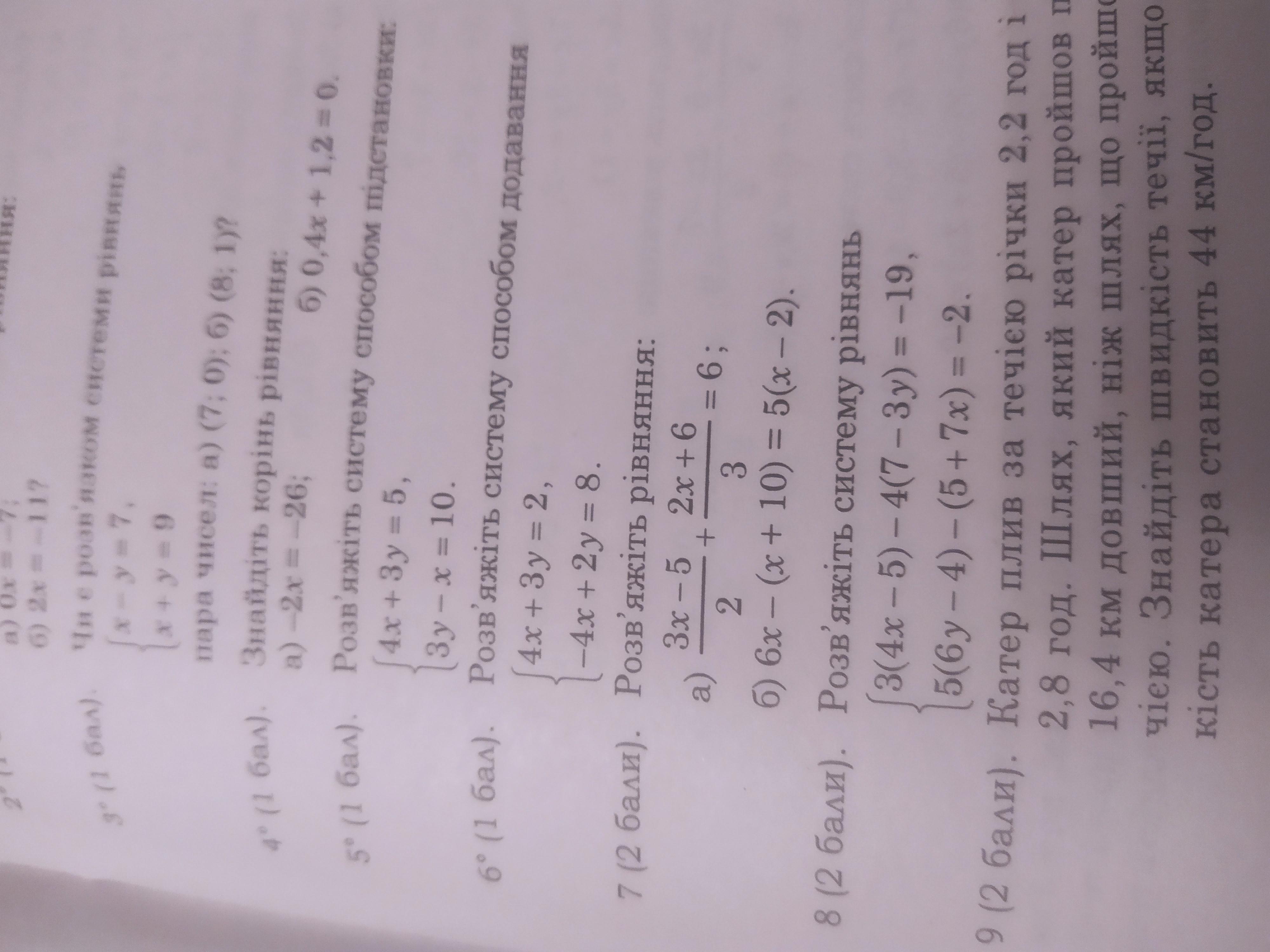 5. 1)4x+3y-6=0 2)x-3y=-10 6. 1)4x+3y-2=0 2)2x-y+4=0 7. А)x=3 б)5x=5x