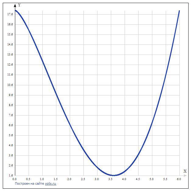 Как видим, функция имеет минимум в точке х = 18/5, так как производная меняет знак с минуса на плюс.