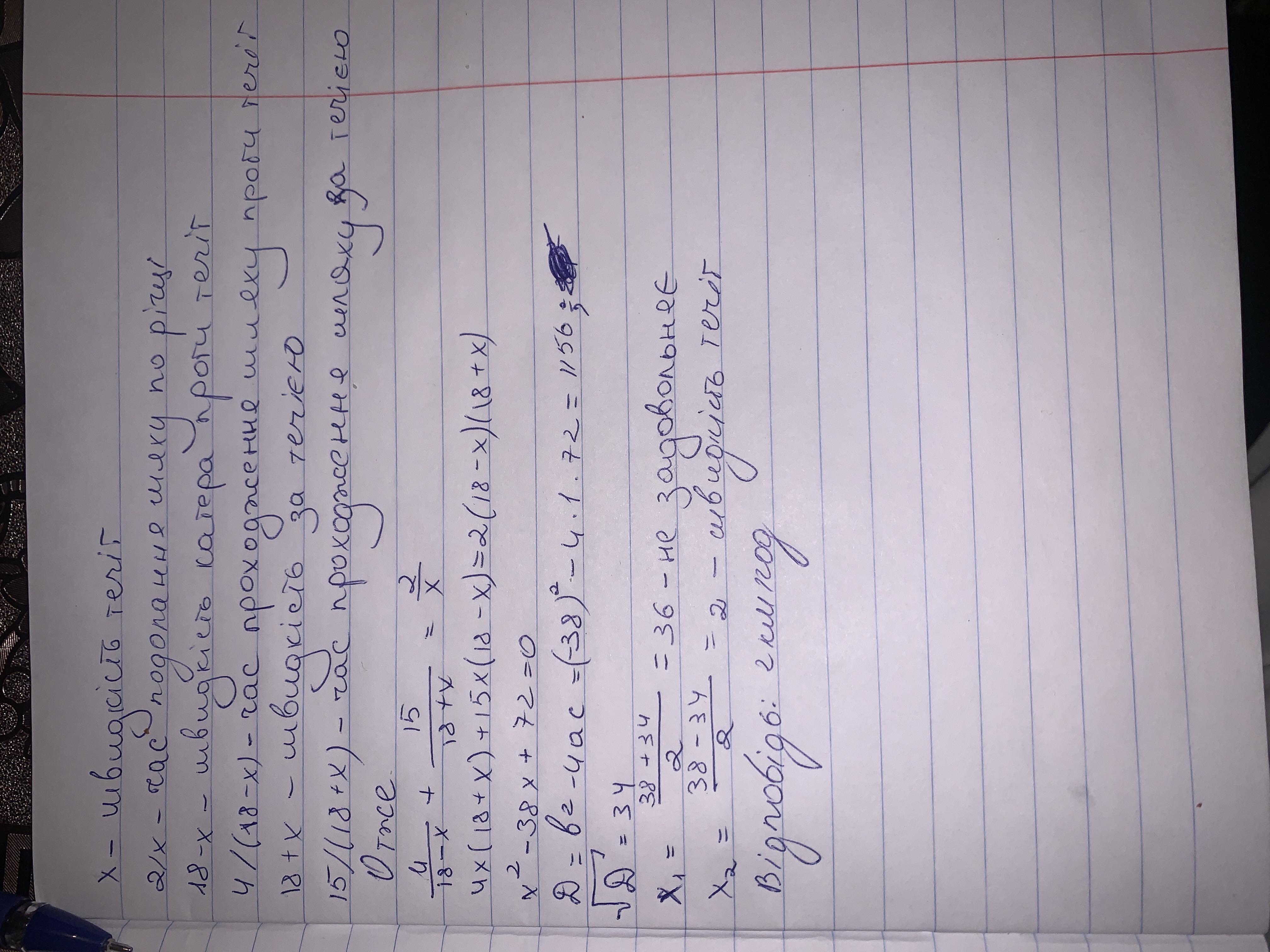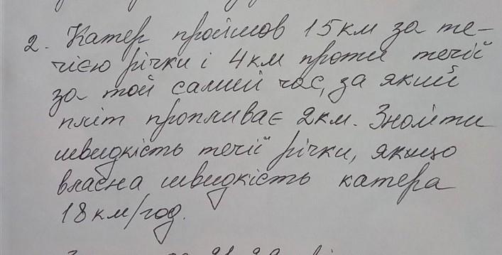 катер пройшов 15 км за течією річки і 4 км проти течії за той самий час за який пліт пропливає 2км. знайти швидкість течії річки, якщо власна швидкість катера 18км/год