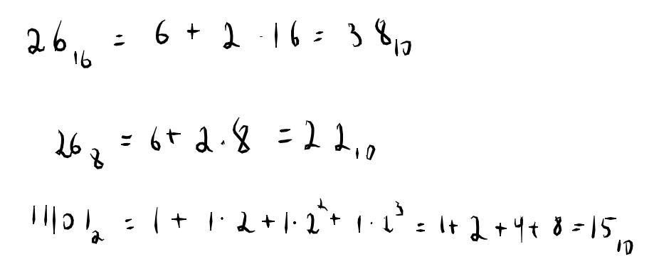 а) 26 в 16 с.сч. = 38 в 10 с.сч.