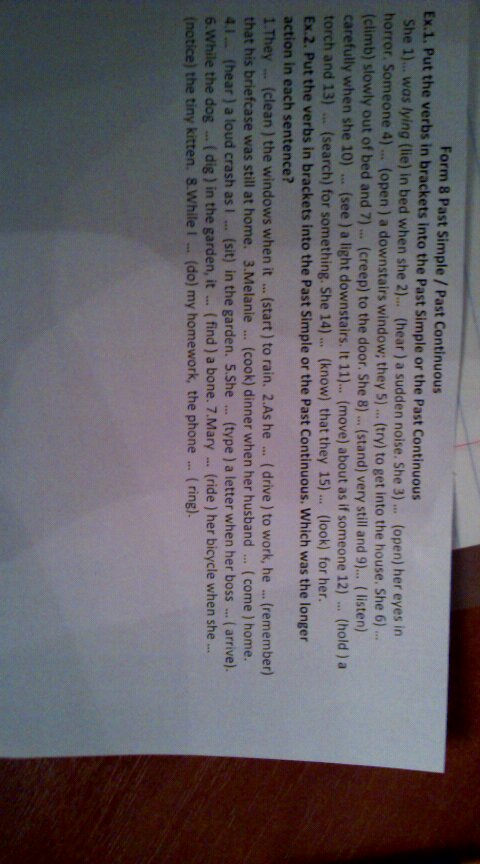 6 climbed 7 crept 8 was standing 9 listening 10 saw 11 was moving 12 was