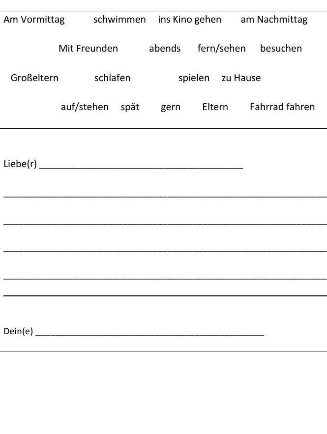 das war sehr gut kenikulen.lm summer gehen wir ins kino. schpielen wir mit einem Klown. er war sehr lustig. bitte schreib mir auch