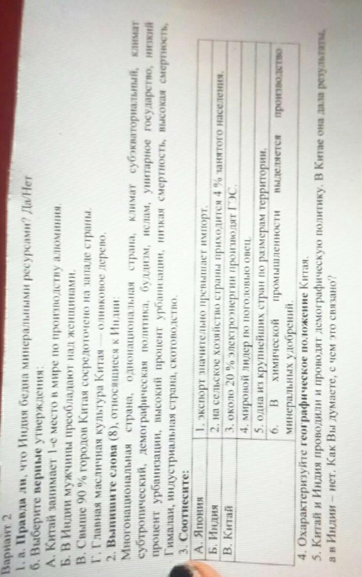 1да,б 2 (4…6…9) Япония 2…3 Индия 4 Китай 1.5.6