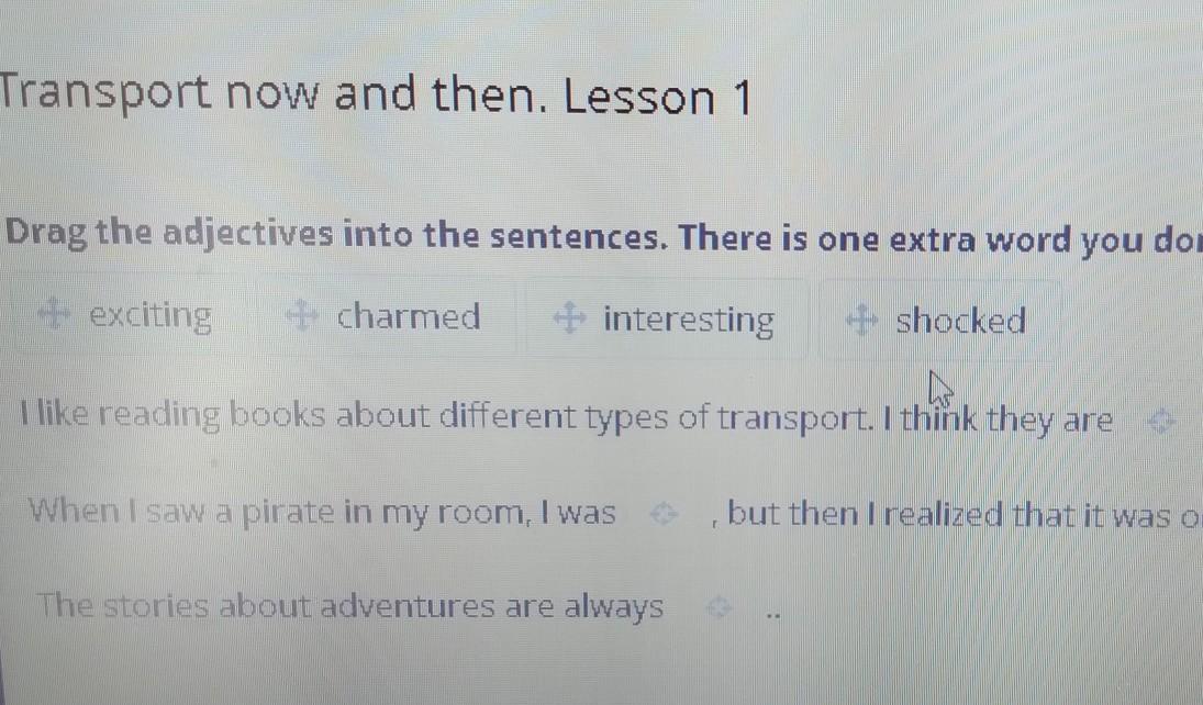 Transport now and then. Lesson 1. Drag the adjectives into the sentences. There is one extra word you don't need to use.