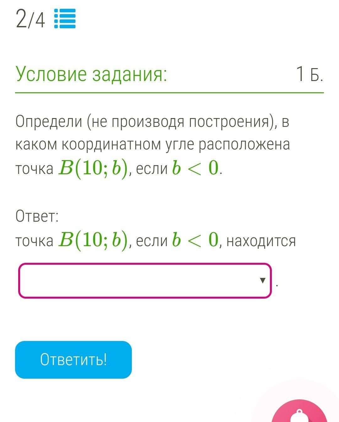 точка В (10;b) находится в 4 четверти