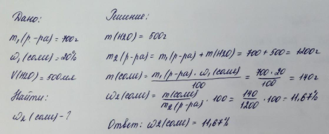 1.Змішали 700 г 20%-го розчину солі і 500 мл