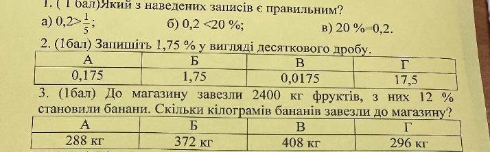 2. Відповідь: 1,75%=1,75/100=0,0175; В) 0,0175.