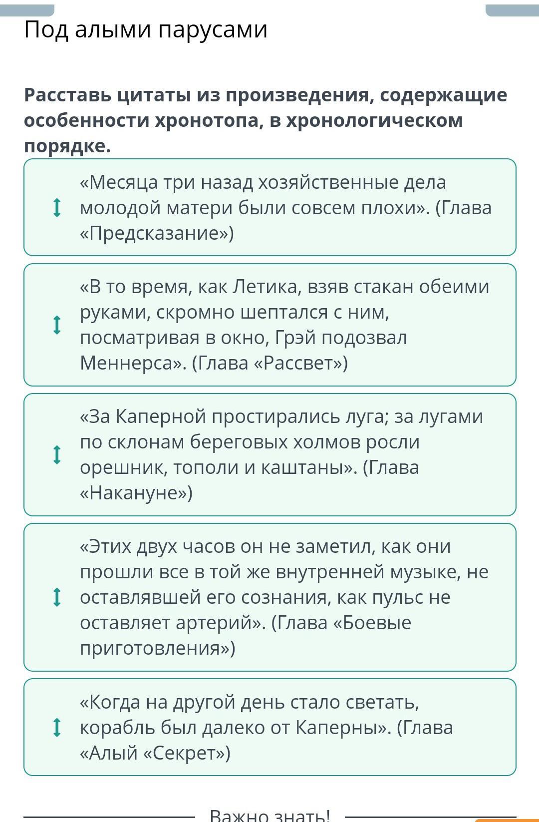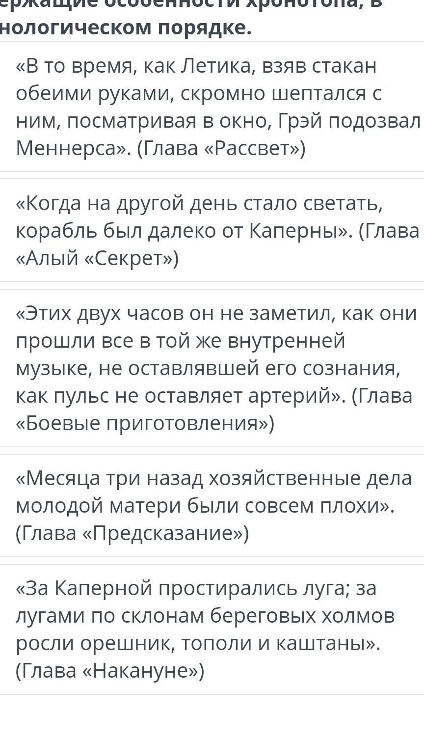 расставте цитаты из произведения, содержащие особенности хронотопа, в хронологическом порядке( Аллые паруса)