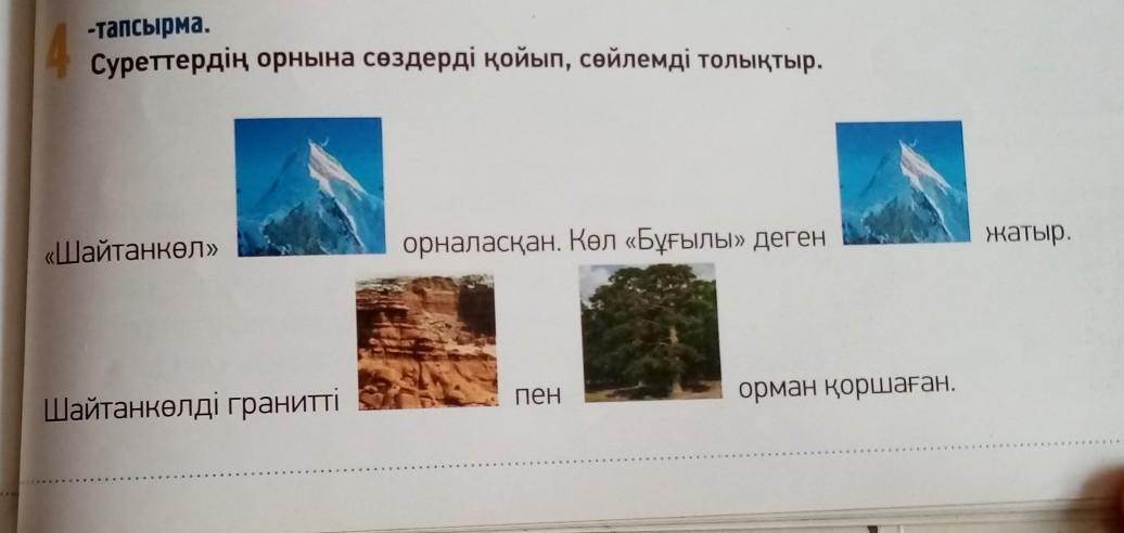 4-тапсырма . Суреттердің орнына сөздерді қойып, сөйлемді толықтыр.