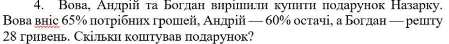 Если 28 грн это 40% остатка, то 100% остатка будет: