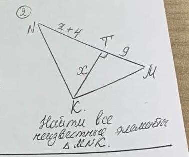 Треугольник NTK (∠Т=90°): NK² = x²+(x+4)²