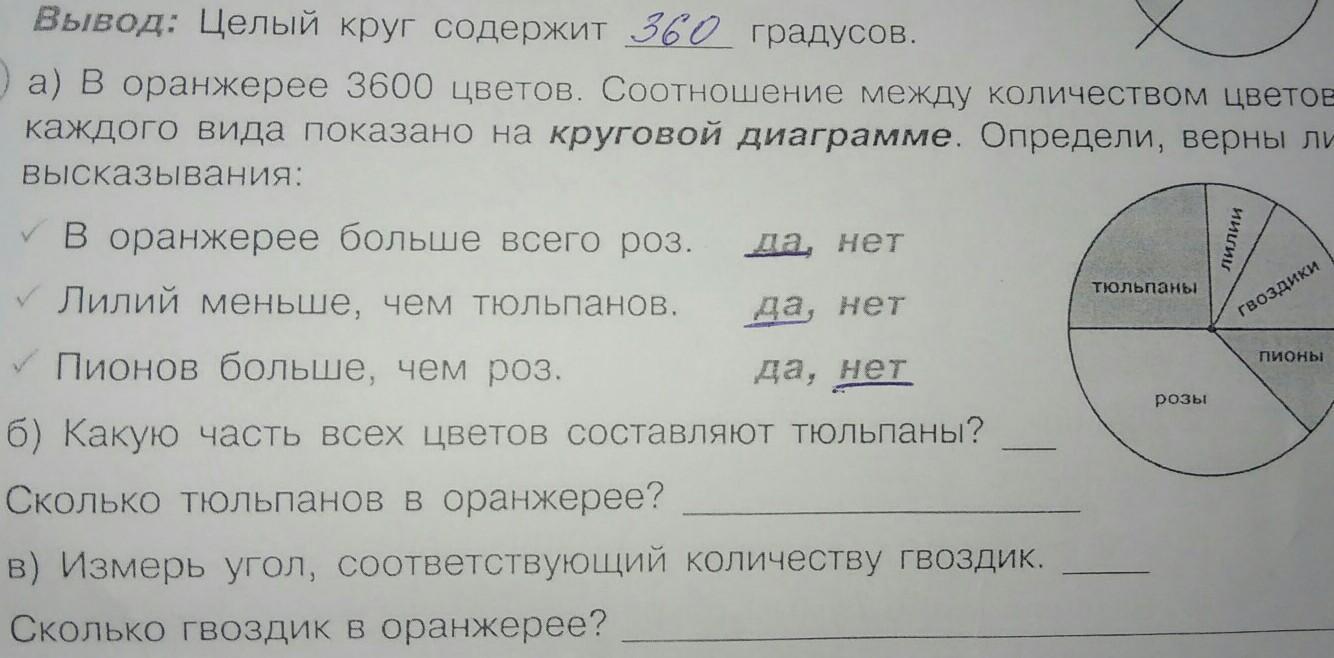 Б) Какую часть всех цветов состовляют тюльпаны?-4