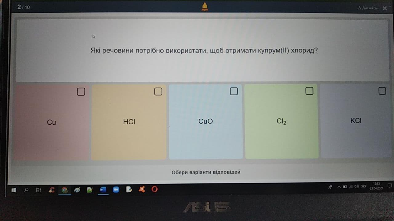 помогите пожалуйста. Які речовини потрібно використати щоб отримать купрум 3 хлорид