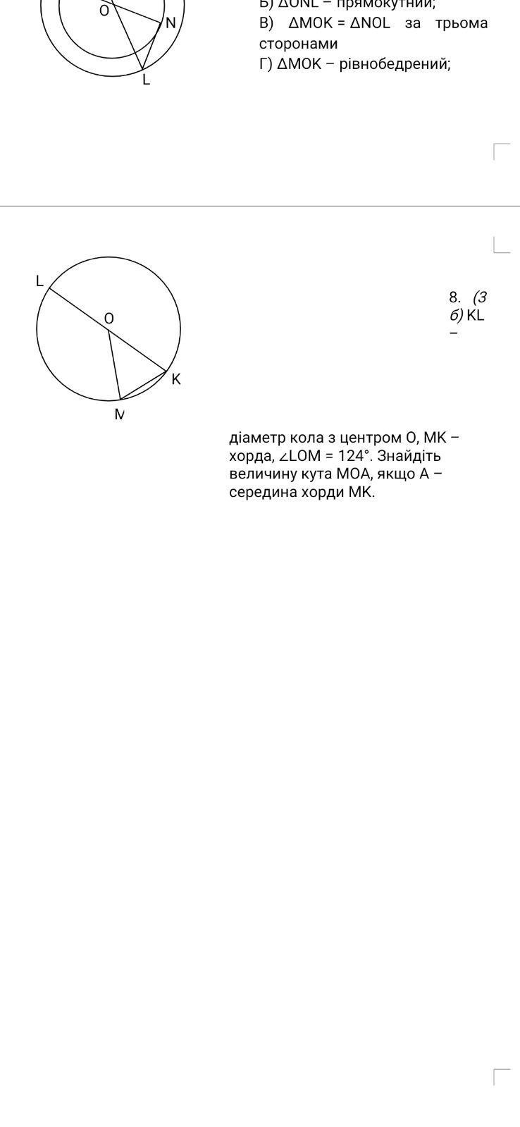 Рассмотрим ∠MOK - центральный угол как и ∠LOM. Мы знаем, что центральный угол равен дегу на которую он опирается, тогда найдем дугу LM = ∠LOM = 124°, теперь найдем дугу MK = 360° - 180° - 124° = 56°,