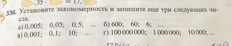б) 600; 60; 6; 0.6; 0.06; 0.006