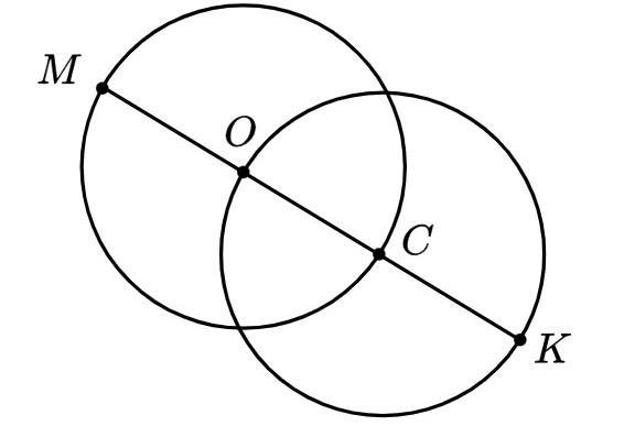 На рисунке изображены две окружности с центрами O и C. Найди радиус каждой окружности, если MK = 4 дм 8 см