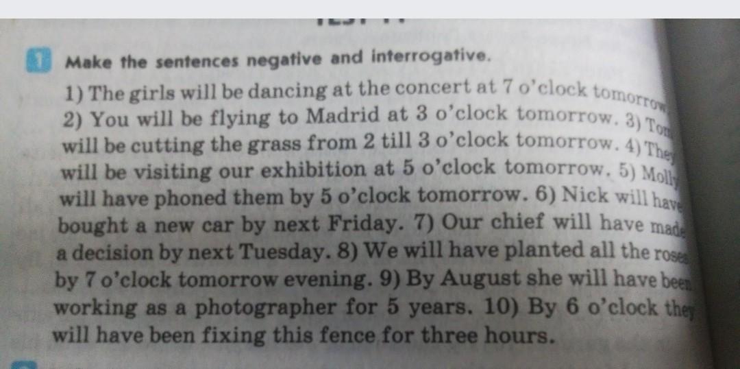 5) Molly won't have phoned them by 5 o'clock tomorrow.