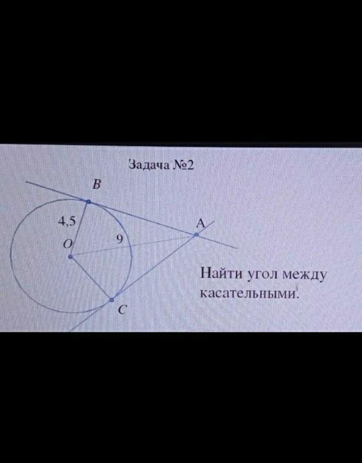 -если катет в два раза меньше гипотенузы, значит он лежит против угла в 30°. Катеты ОВ=ОС=4,5 равны половине гипотенуза ОА. Значит ∠ВАО=∠САО=30°. Ну, тогда ∠ВАС=2*30°=60°.