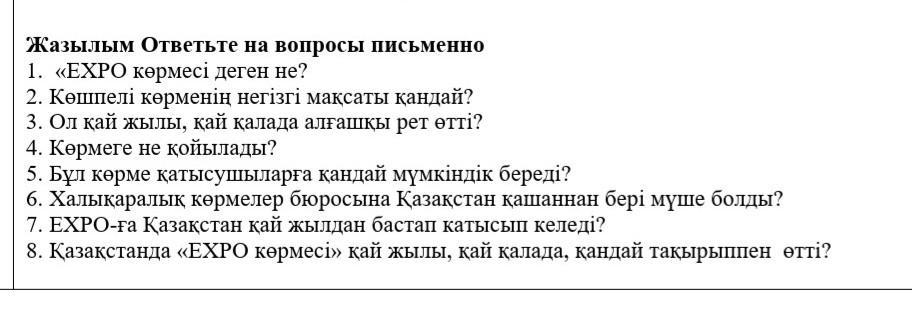 1)ЕХРО көрмесі туристер үшін ашылған нысана