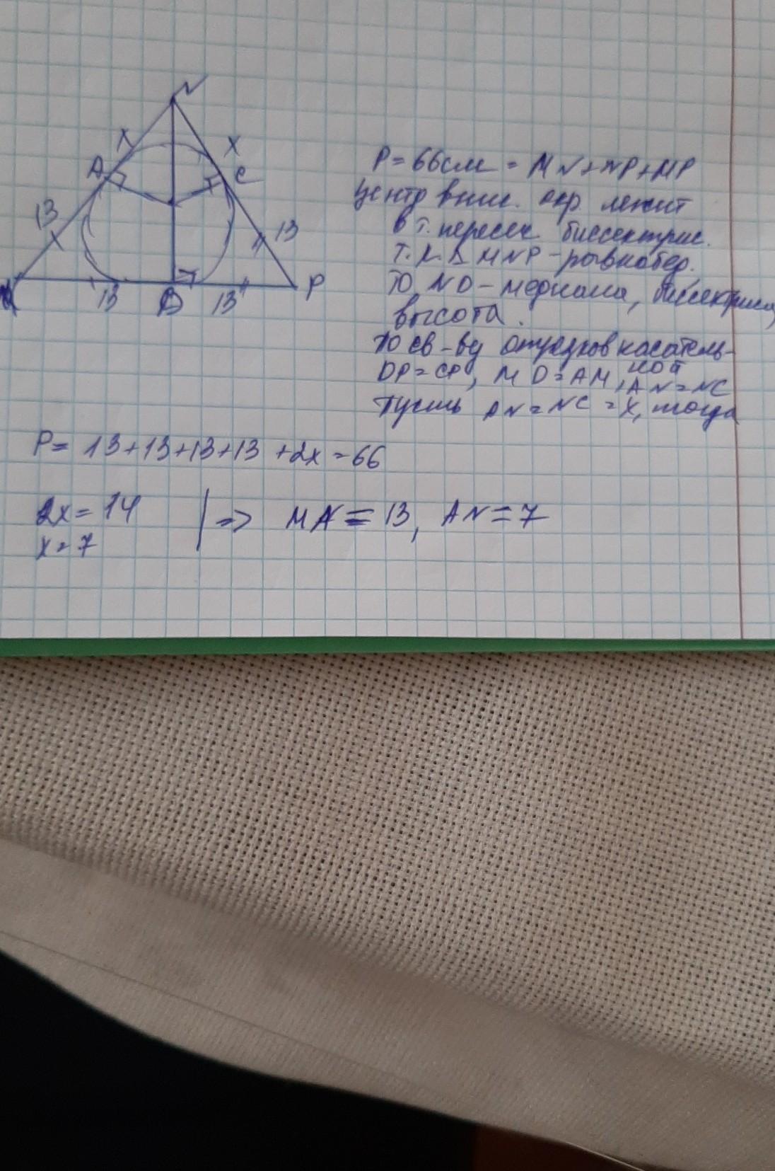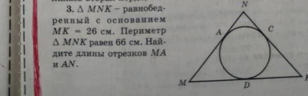 треугольник MNK равнобедренный с основанием MK =26 см. Помогите