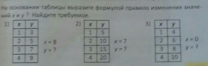 на основании таблицы выразите формулу правила изменения значений