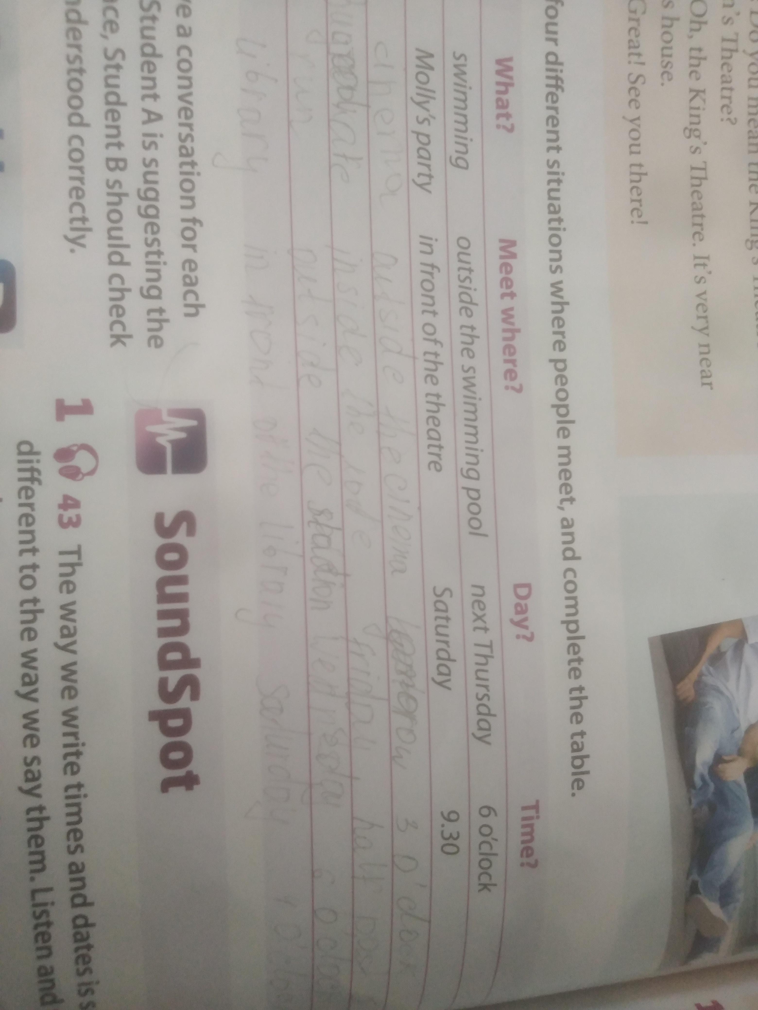 Think of four different situations where people meet and complete the table example1