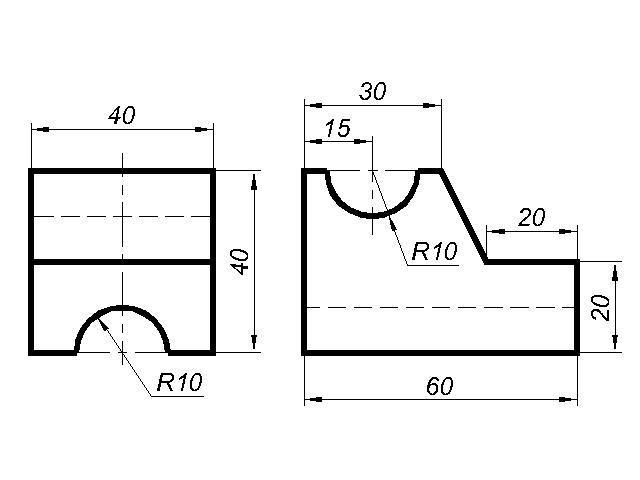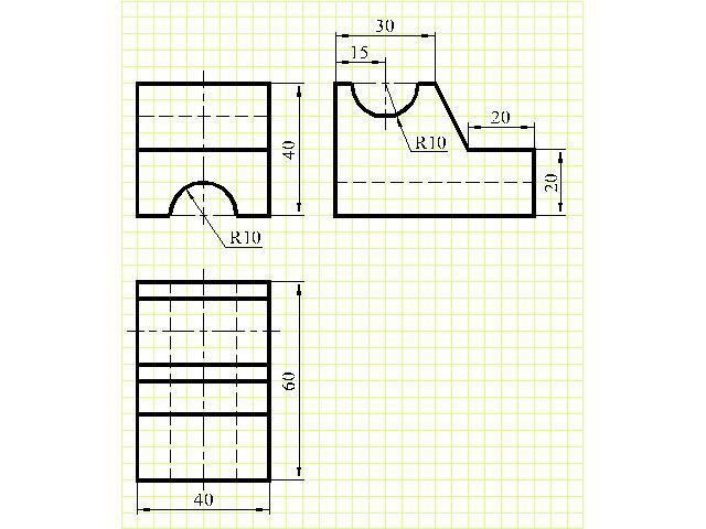 Для этой детали достаточно начертить два вида (спереди и слева) - см. третий чертеж.
