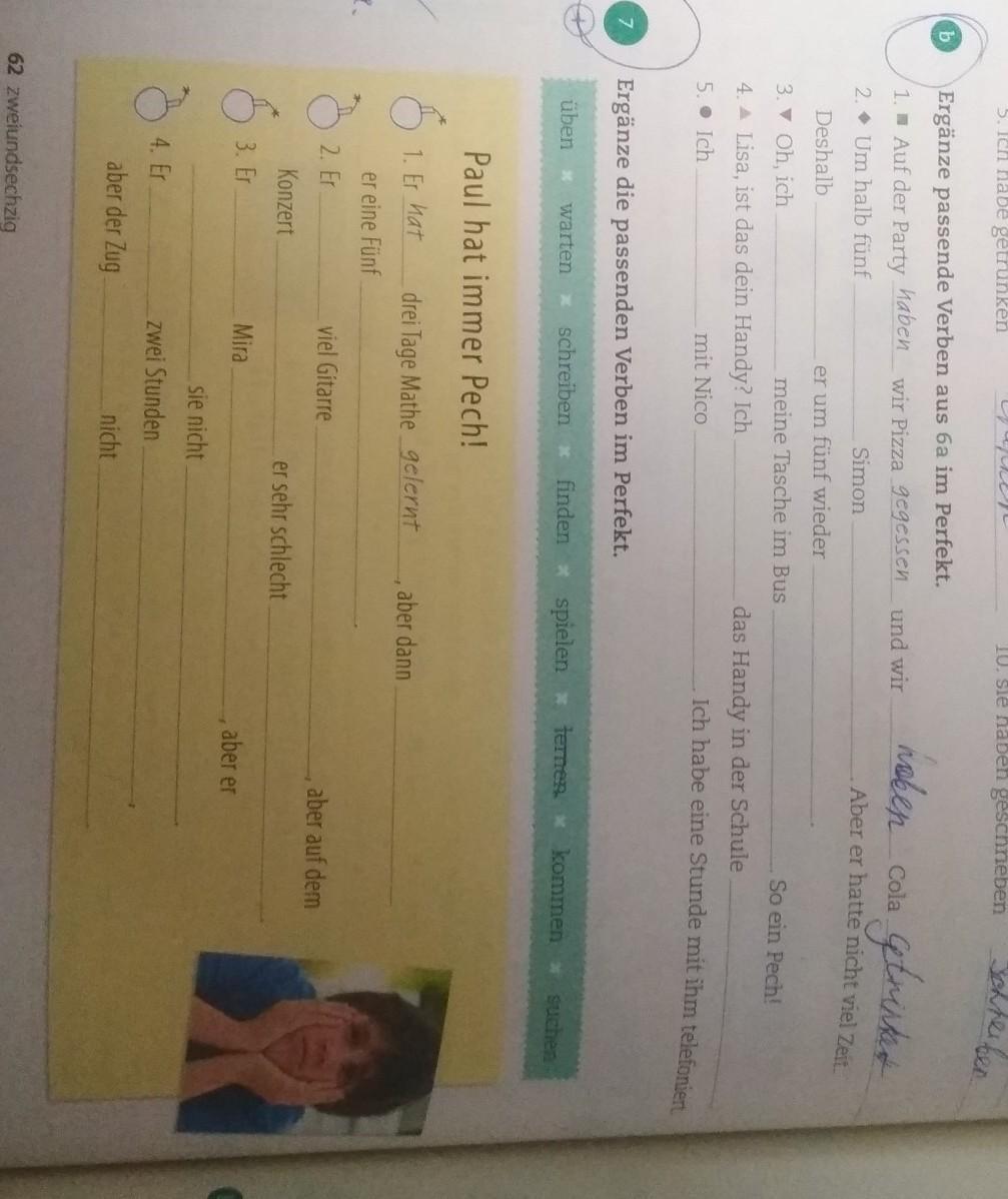 1. Er hat drei Tage Mathe gelernt, aber dann hat er eine Fünf geschrieben.