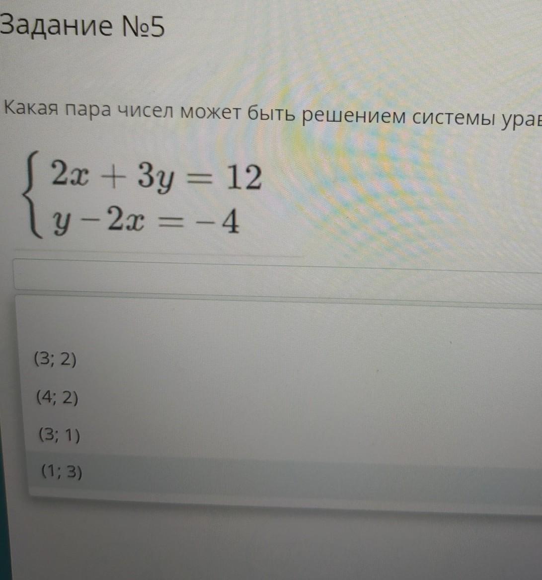 Какая пара чисел может быть решением системы уравнений, приведенной ниже?