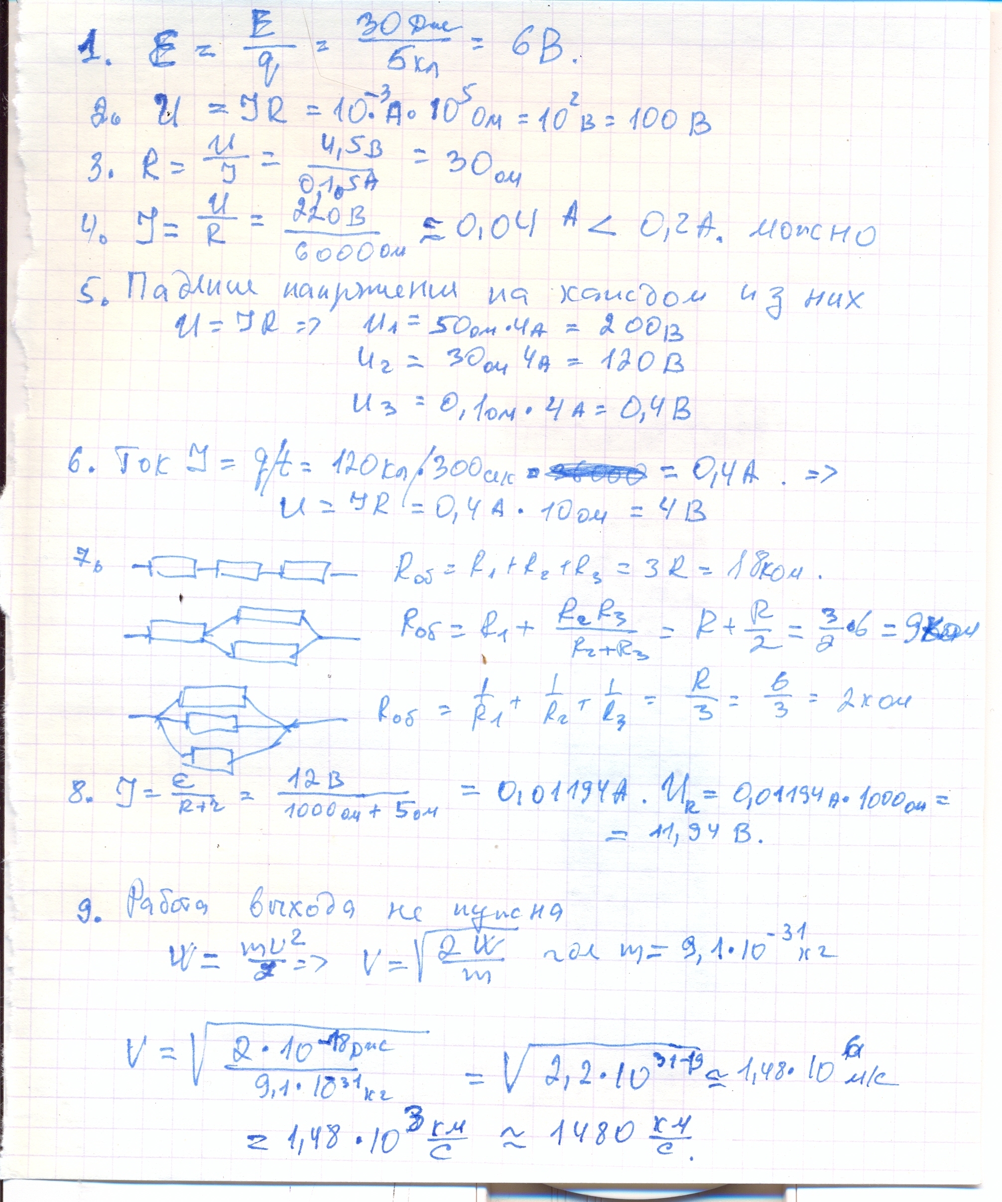 1. При перемещении заряда 5 Кл внутри источника тока сторонние силы совершают работу 30 Дж.