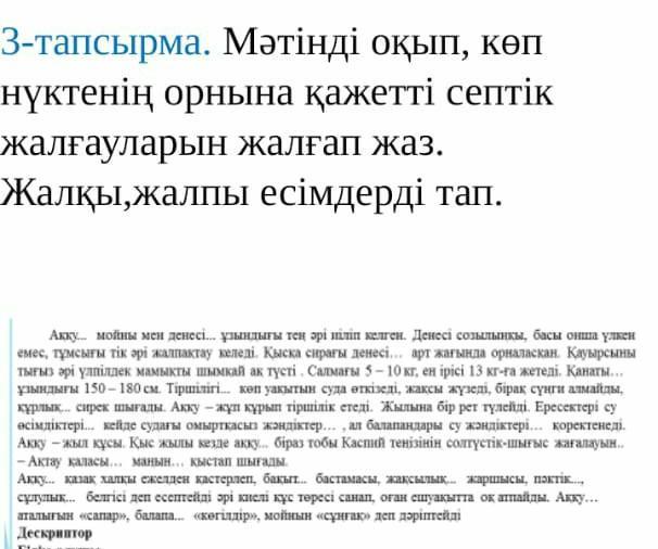Ответ: Аққудың, денесінің, денесінің, қанатының, тіршілігінің, құрлықтан, өсімдіктерімен, жәндіктермен, жәндіктерімен, аққудың, жағалауда, Ақтау қаласының, маңында, Аққуды, бақыттың, жақсылықтың, пәктіктің, сұлулықтың, Аққудың, балапанын.