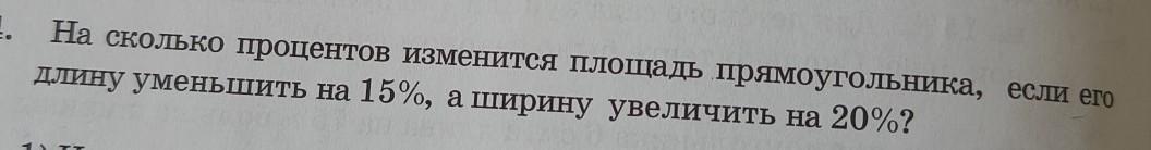 1304.насколько процентов изменится площадь прямоугольника если длину уменьшить на 15% а ширину увеличить на 20% плззззз