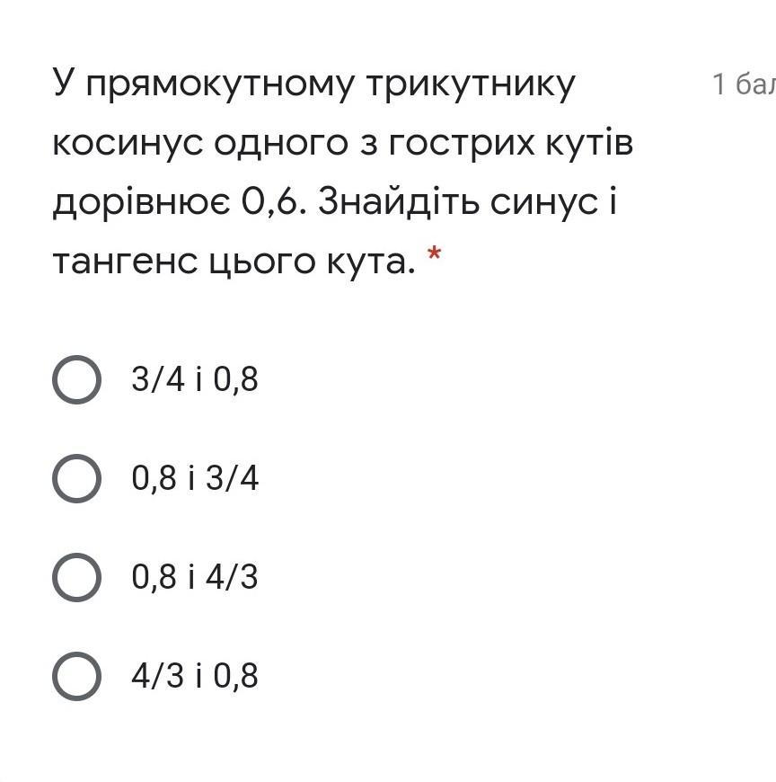 тангенс это отношение sin/cos = 0,8/0,6=4/3