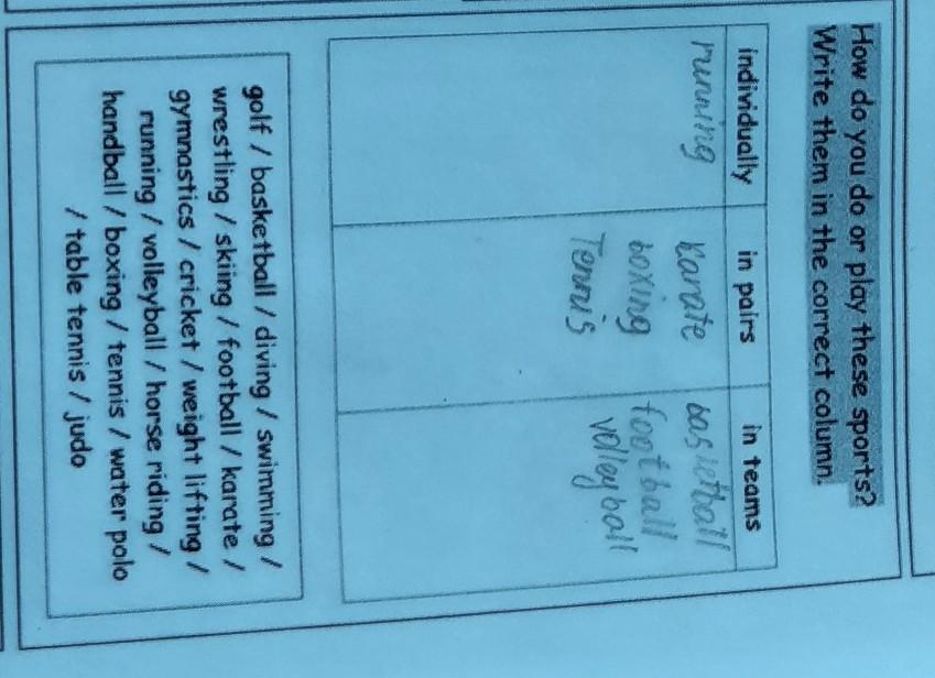 2)(in pairs) wrestling,cricket,table tennis,judo.