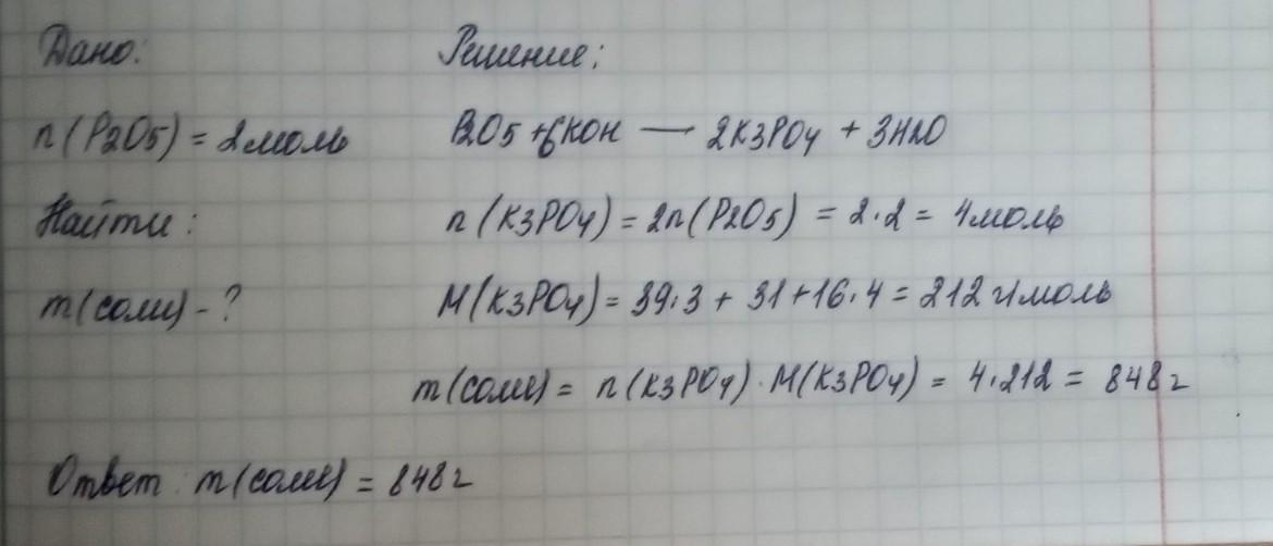 Знайти масу солі яка утворилась при взаємодії 2 моль оксиду Р ( V) з гідроксидом калію. помогите пожалуйста.