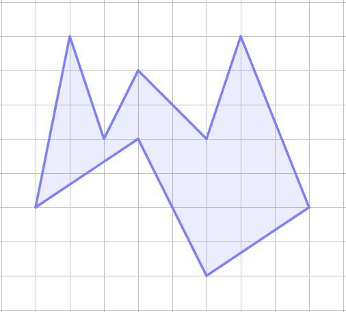 Найдите площадь закрашенной фигуры, если площадь одной клетки равна 1см в квадрате. Дайте ответ в квадратных сантиметрах с точностью до целых.