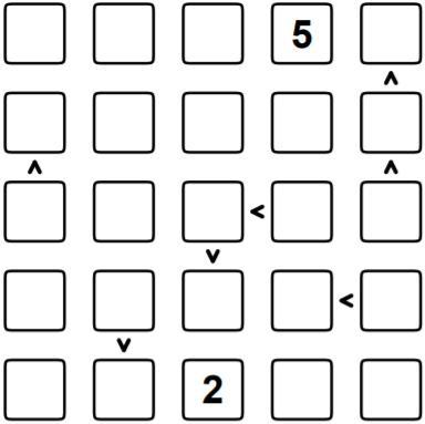 Заполните клетки числами 1,2,3,4,5, учитывая знаки неравенства так, чтобы в каждой строке и в каждом столбце каждое число было записано один раз. Какое число будет записано в верхней строке в угловой клетке слева?