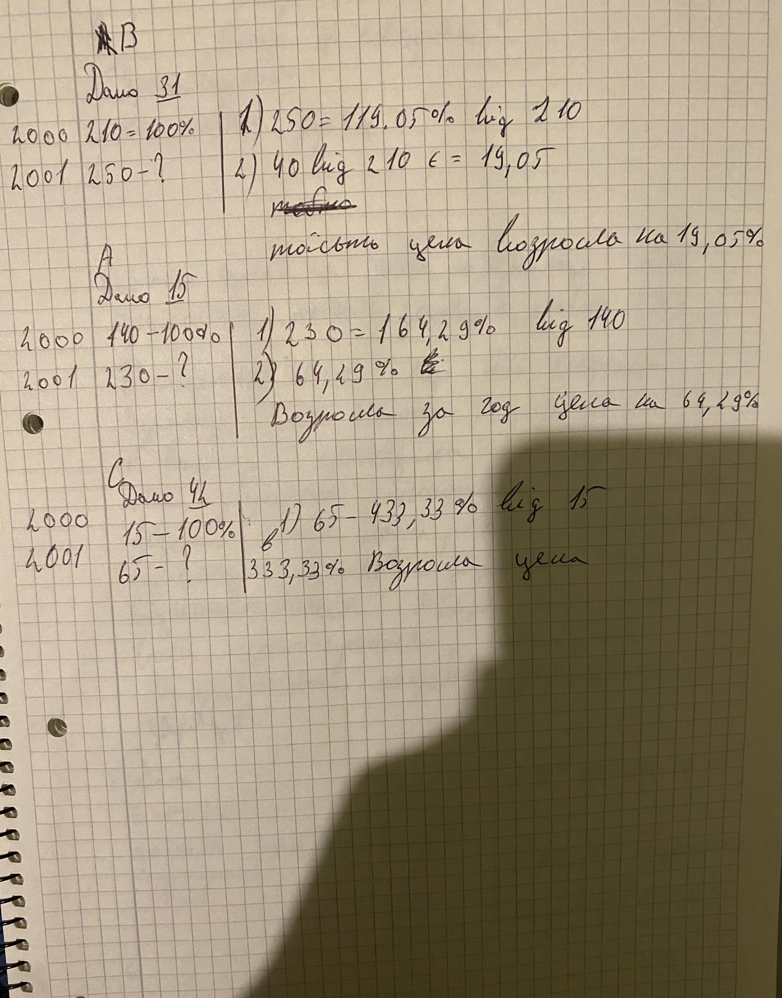 товар B количество 31,цена за единицу в 2000 г 210,в 2001 250 руб