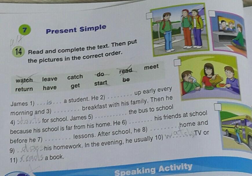 9)d.ge his homework. In the evening, he usually 10) watch TV or