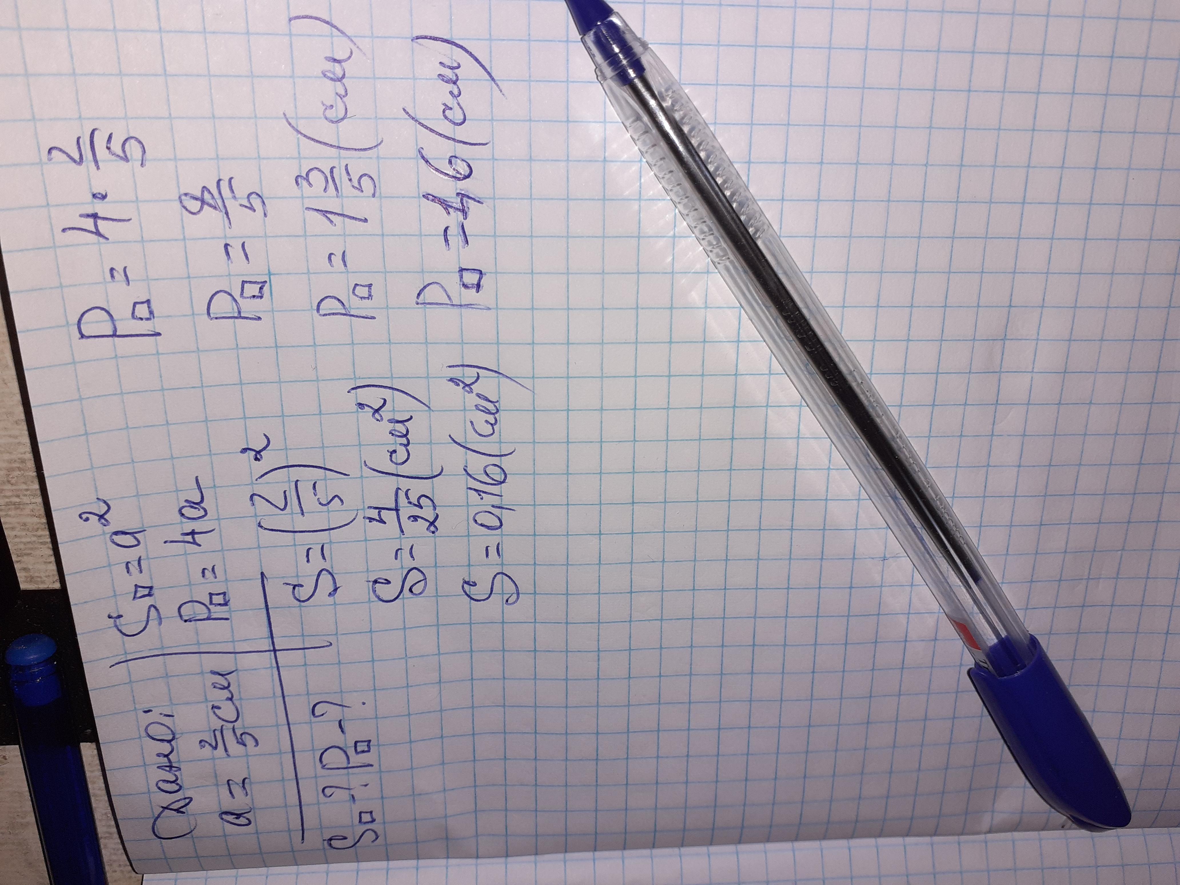 Вычислите площадь и периметр квадрата со стороной 2/5см
