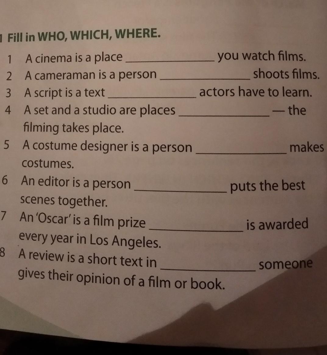 Ответ: where, who, which,where,who,who, which, which