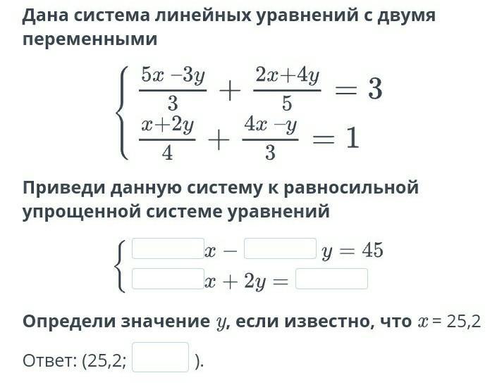 Приведи данную систему к равносильной упрощенной системе уравнений