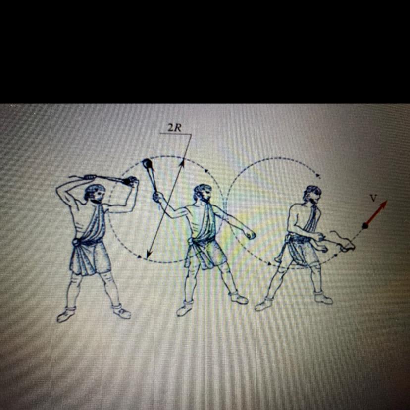 насколько быстро нужно вращать пращу, чтобы камень в конце поворота приобрел скорость v = 108 км / ч, если рука с пращой образует круг с радиусом R = 700 мм.