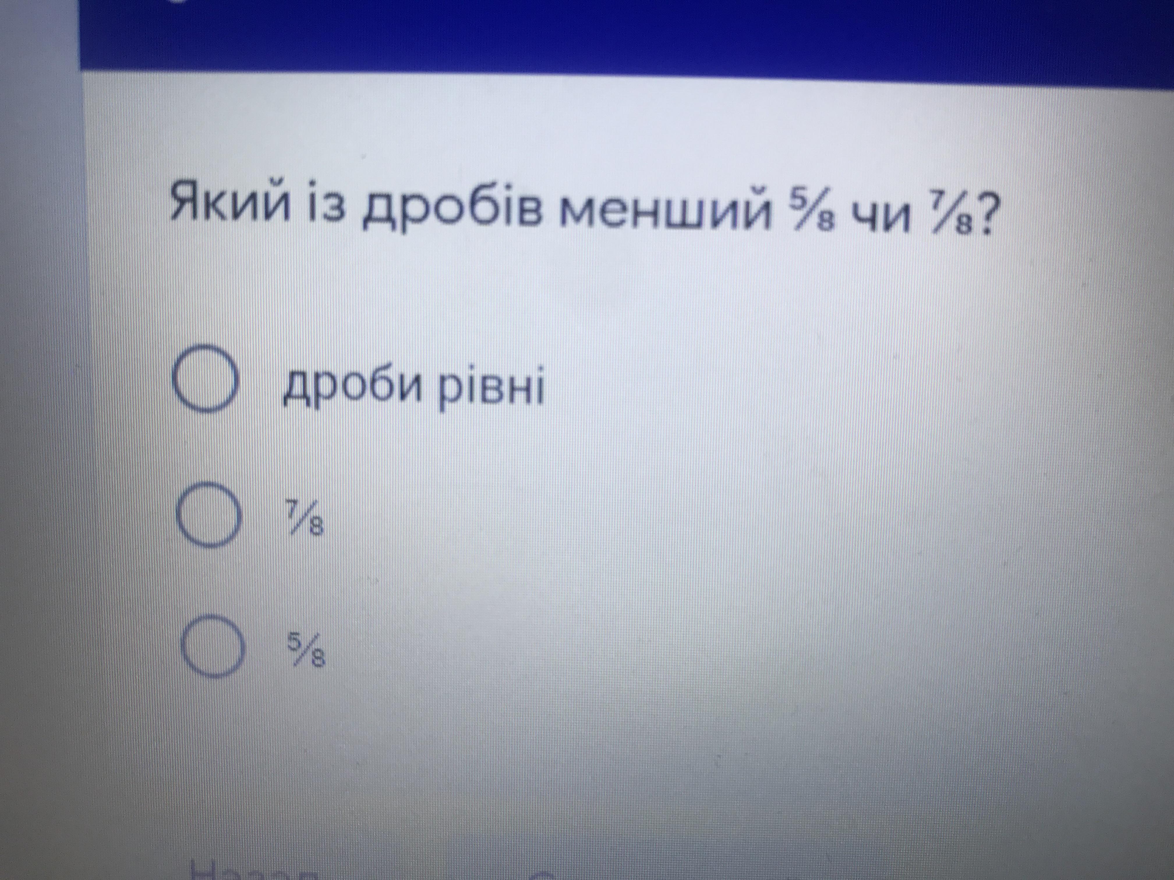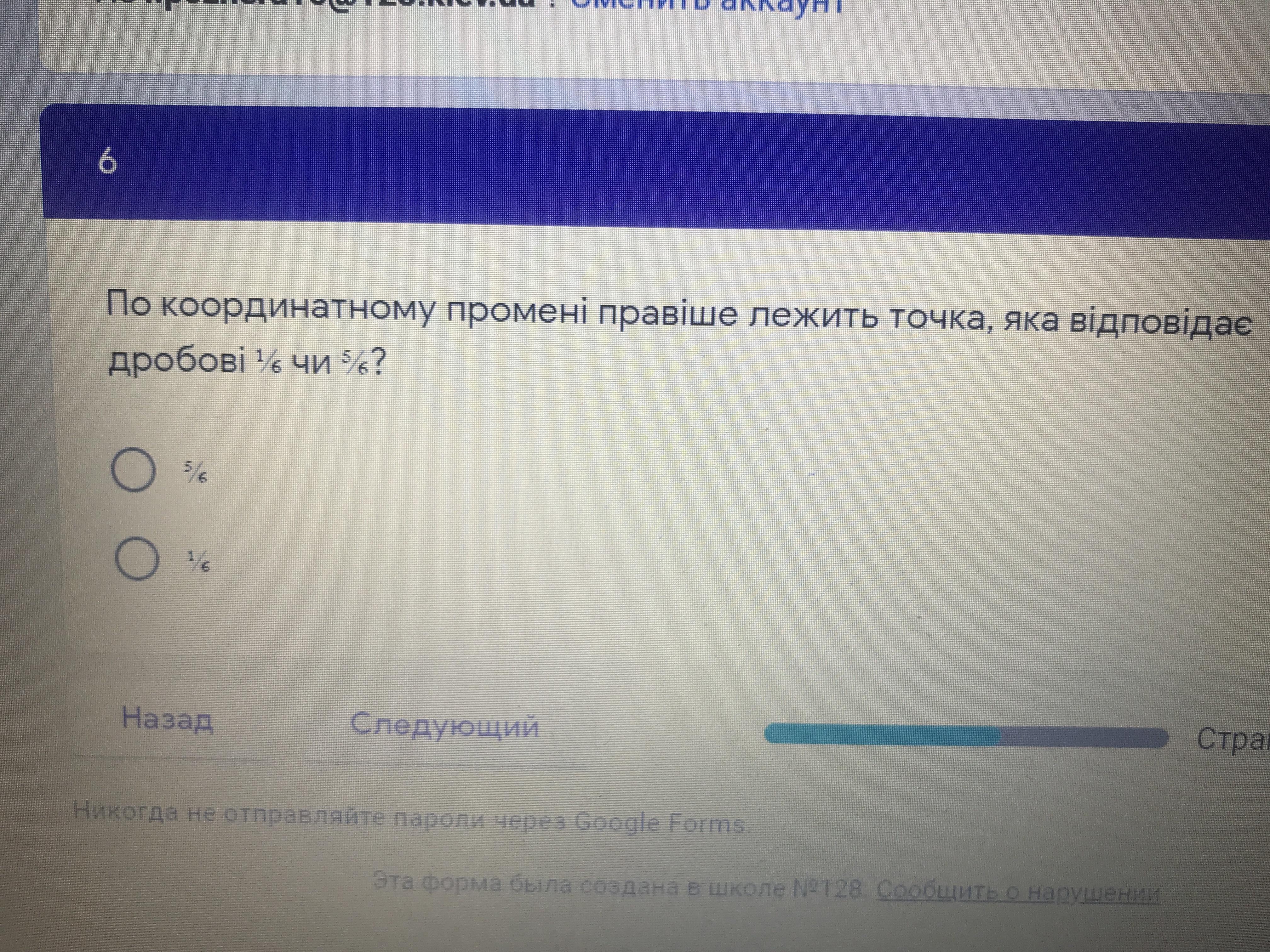 3.По координатному промені правіше лежить точка, яка відповідає дробів 1/6 чи 5/6?